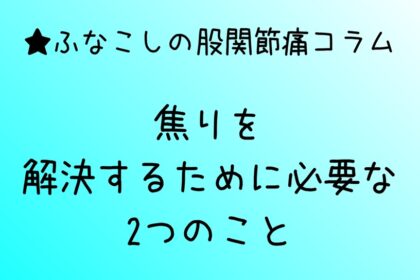 昨日のコラムで、股関節痛を速やかに治したいなら「焦り」を解決する必要がある、とお話しました。では、どうすれば良いか? それには次の2つ...