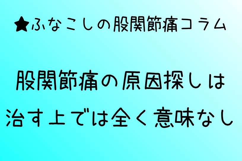 ということで、股関節痛の原因を探すのは、治すこととは真逆のことであり、治す上では全く意味がないのです。
