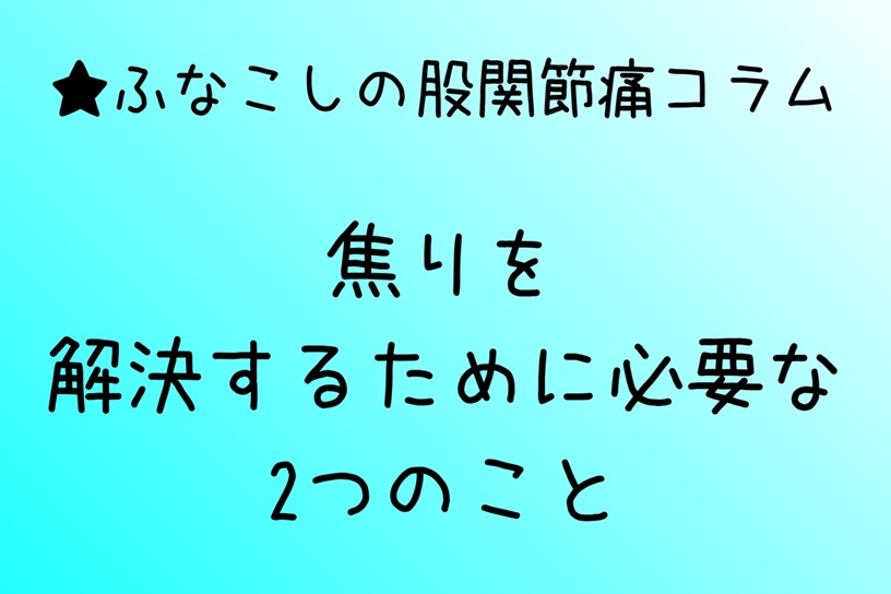 昨日のコラムで、股関節痛を速やかに治したいなら「焦り」を解決する必要がある、とお話しました。では、どうすれば良いか?